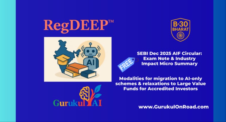RegDEEP™ Decoding SEBI Circular Dec 2025: A crisp, exam-ready micro summary of the latest SEBI AIF circular introducing AI-only schemes and LVF relaxations. Designed for NISM XIX aspirants and AIF industry professionals